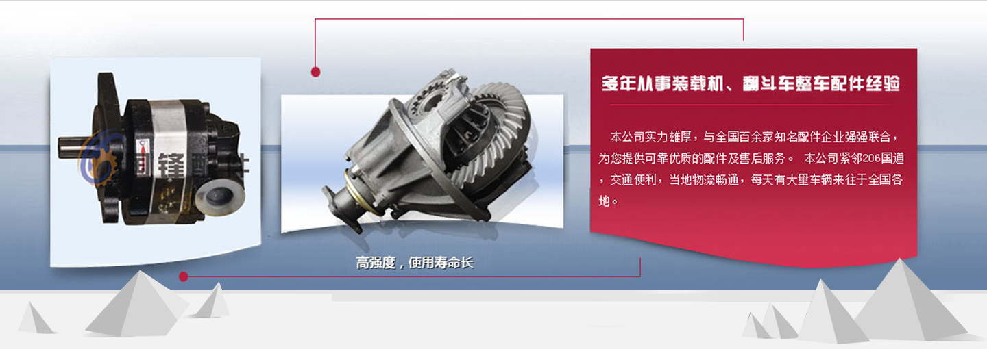 萊州市國鋒裝載機配件有限公司 位于全國最大的中小型裝載機制造基地萊州市沙河鎮,是一家專業從事 ZL08--ZL20型裝載機配件、小型裝載機配件、翻斗車整車配件批發、配套的企業。本公司實力雄厚,是中小型裝載機配件行業最大的供應商之一,與全國百余家知名配件企業強強聯合,為您提供可靠優質的配件及售后服務。 本公司緊鄰 206 國道,交通便利,當地物流暢通,每天有大量車輛來往于全國各地。